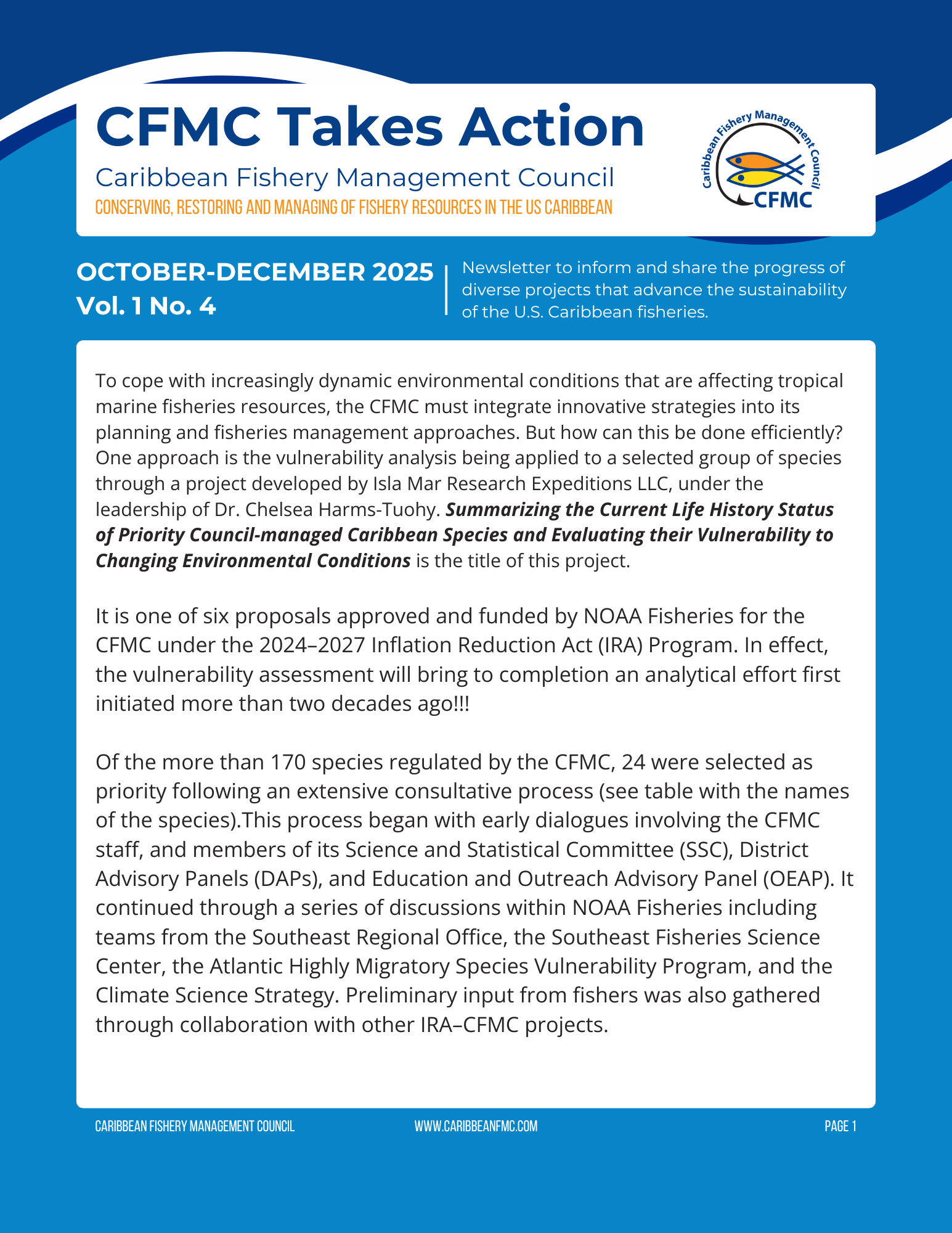 Newsletter to inform and share the progress of diverse projects that advance the sustainability of the U.S. Caribbean fisheries.